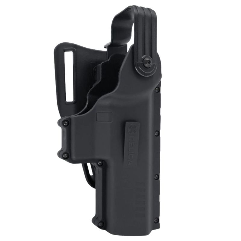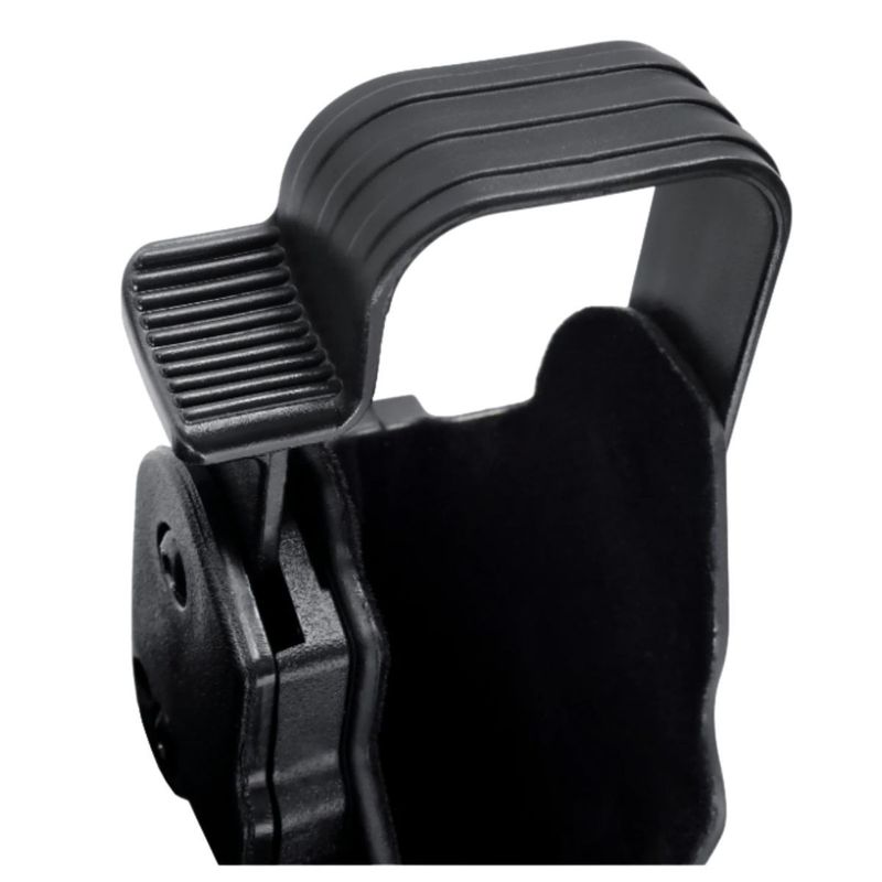 Fabricado em polímero de alta resistência, traz retenção dupla (ativa e passiva), design remodelado para melhor empunhadura e trava anti-arrebatamento Thumb-Break, que impede o saque acidental ou por terceiros.
