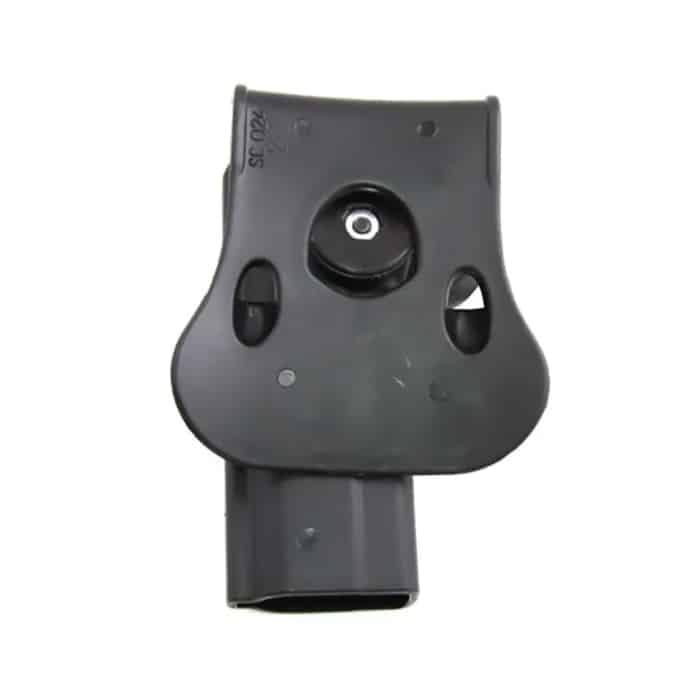 Paddle de silicone macio e confortável que encaixa firmemente o coldre ao cinto ou à sua cintura. Gira 360 graus para regulagem adequada a cada atirador, e possui passador de cinto tático