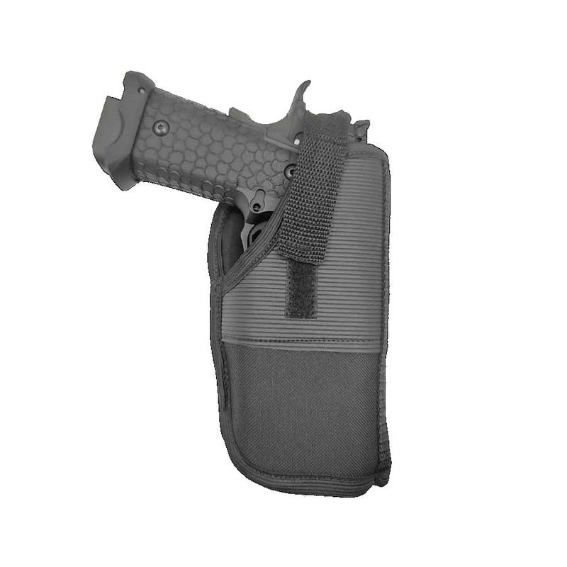 Fabricado em Nylon reforçado e interno em neoprene, o coldre universal Prime Guns não arranha ou danifica a arma. Foi projetado para o transporte ostensivo (porte)* de armas curtas, sendo prático para armas de todos os calibres e tamanhos.