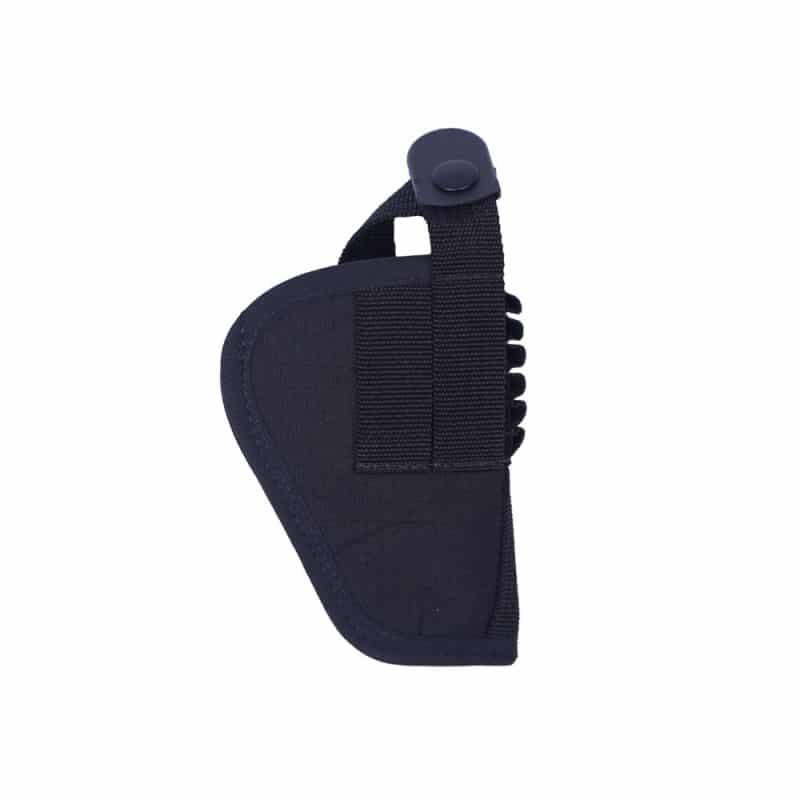 Este Coldre de Cintura Interno para Revólver Gun 32 com Baleiro ainda conta com fita de nylon com botão para liberação do revólver para facilitar o saque e evitar enrosques indesejados ou travamento da arma. Também possui passador de cinto como para utilização também como coldre externo, fazendo dele um coldre híbrido.
