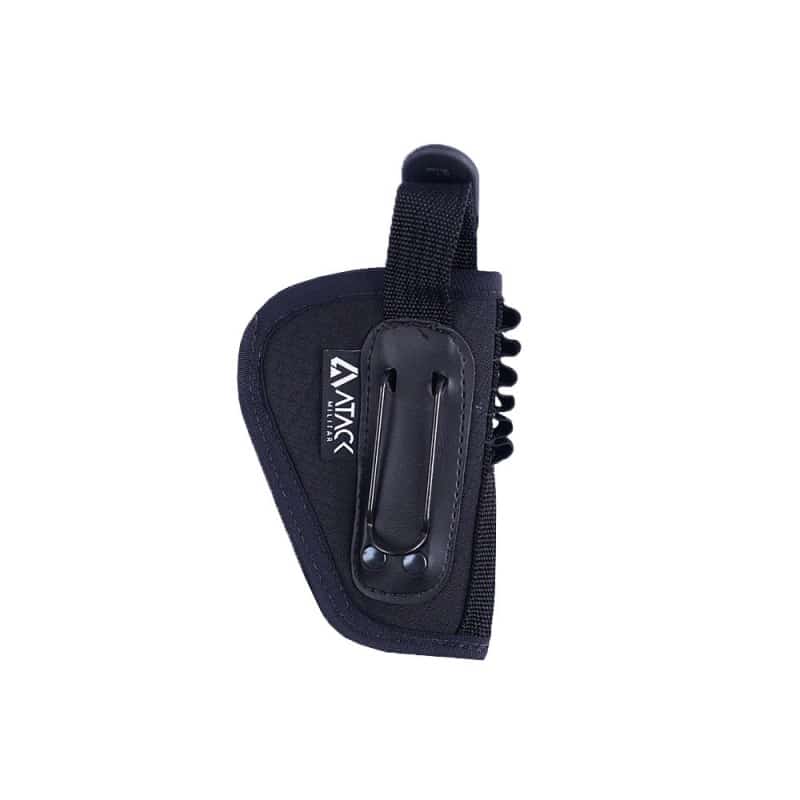 Desenvolvido em triplo tecido: cordoba, E.V.A e bora, entregando uma composição super resistente, maleável e de alta qualidade com revestimento que se molda a arma e, ao mesmo tempo, a protege contra o suor, sujeiras e arranhões para aumentar ainda mais a sua vida útil do seu equipamento. Para você ter ainda mais mobilidade, conta com clipe de metal flexível para seu uso com o coldre interno com baleiro por dentro da vestimenta.