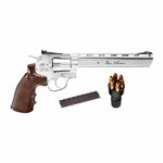 Esta Dan Wesson 8" Silver Revólver 4,5mm Metal + Capa + Cartuchos dispara no modo Repetição com velocidade de 440fps - 136m/s e energia de 3,3 Joules Ver mais