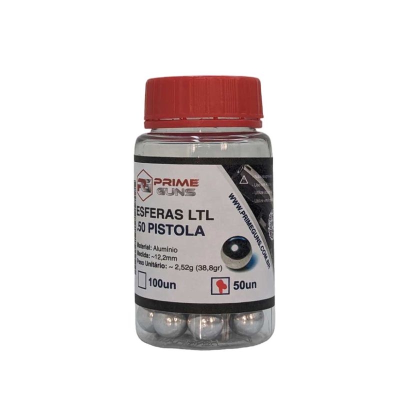 Fabricada em alumínio, as esferas .50 possuem medida de 12,2mm, projetadas especialmente para armas de defesa pessoal .50, como a Alfa LTL, Umarex HDP T4E e demais armas de Co2 que possam disparar esferas de calibre .50.