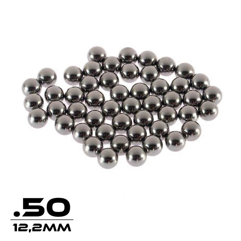 As esferas possuem 12,2mm, medida precisa das esferas para armas calibre .50, tendo boa aderência e peso, sendo mais eficiente que esferas de aço.
