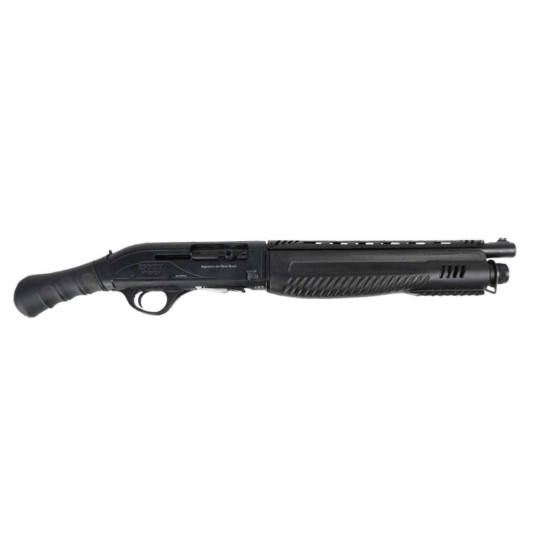 A Escort AutoDefend reúne recursos práticos que a tornam uma escolha sólida para cenários onde espaço, resposta rápida e confiabilidade são essenciais. O corpo em metal combinado com telha e coronha em polímero de alta resistência torna o conjunto leve (aprox. 3,1 kg) e resistente ao uso rústico. O cano de 14” (36 cm) encurta o perfil da arma sem sacrificar desempenho com cartuchos 12GA — especialmente útil em ambientes urbanos, veículos ou espaços confinados.