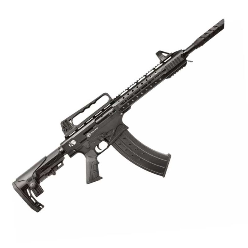 Trata-se de uma espingarda calibre 12 que dispara de forma sequencial (Semi Auto), com um formato e magazine no sistema de rifle, que em aparência lembra uma mistura de AR-15 com AK47.