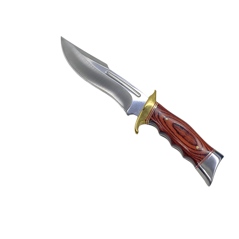 Sua lâmina de aço inoxidável 7Cr13 tem 175mm de comprimento e 3,75mm de espessura, oferecendo ótima retenção de fio e alto poder de corte. O cabo é confeccionado em madeira natural, com acabamentos em aço e latão, proporcionando firmeza, ergonomia e um visual clássico.