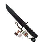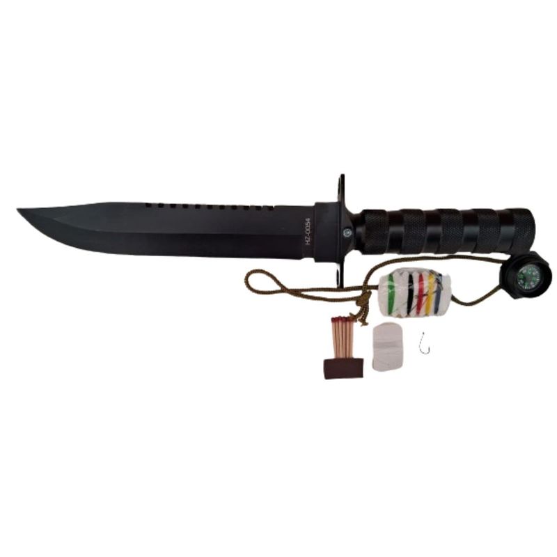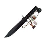 Faca Inox com Bainha Cabo de Metal Preto com Acessórios Tipo Rambo