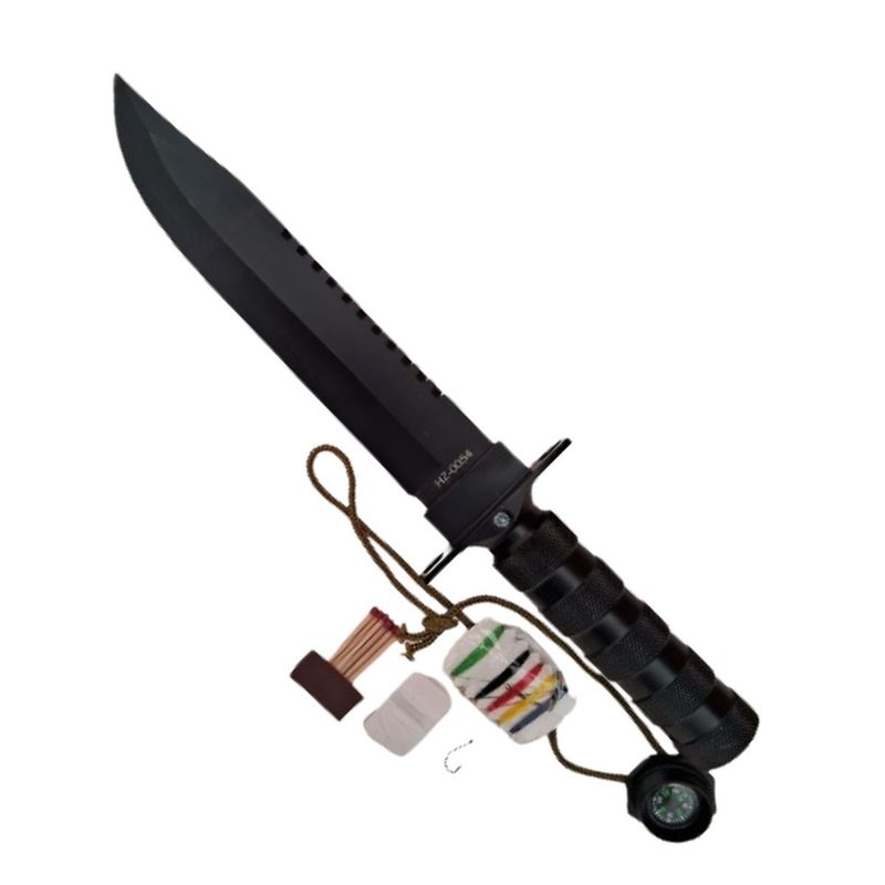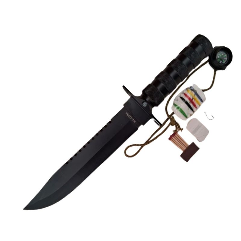 CutelariaFaca de CozinhaFaca Inox com Bainha Cabo de Metal Preto com Acessórios Tipo Rambo