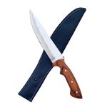 Faca Inox Com Bainha em nylon cabo madeira e detalhe em aço