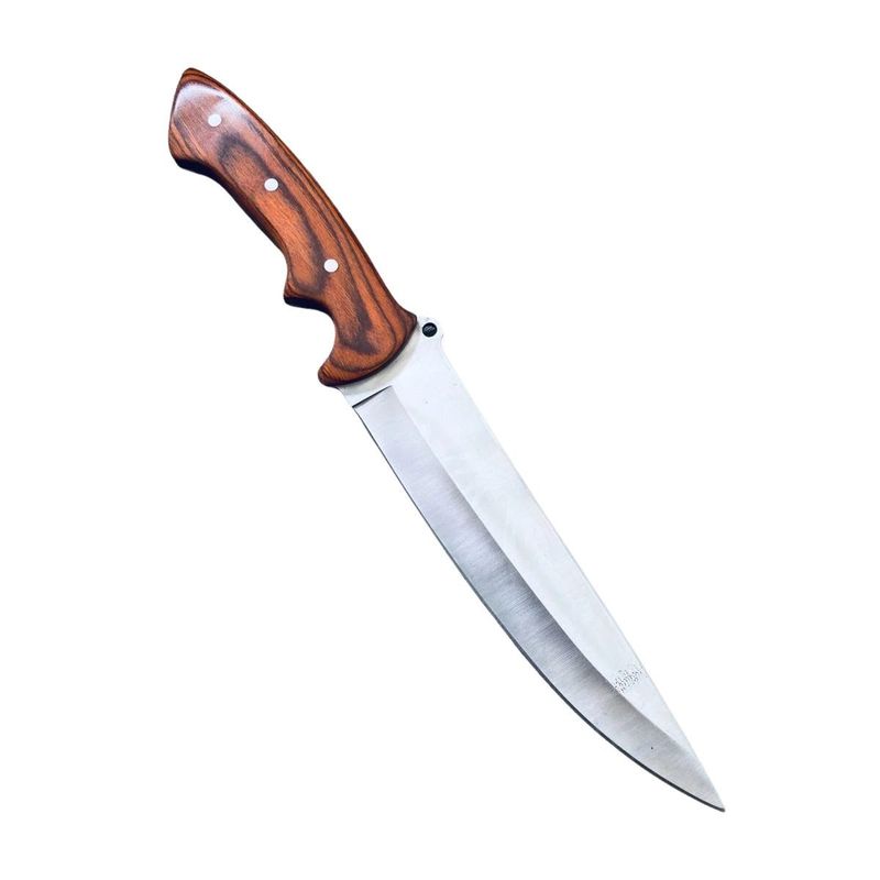 A Faca de Caça Inox é uma excelente escolha para quem busca robustez, funcionalidade e visual clássico em uma faca de uso outdoor. Projetada para atividades como camping, trilhas, caça, pesca e uso geral, ela combina uma lâmina resistente em aço inoxidável com um cabo em madeira envernizada, oferecendo firmeza, durabilidade e conforto no manuseio.