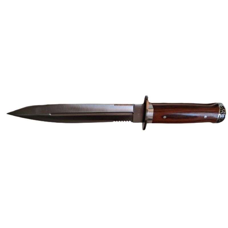 Com uma lâmina de 20 cm em aço inoxidável e comprimento total de 32,5 cm, ela é ideal para caça, pesca, camping, churrasco, trilhas e sobrevivência.