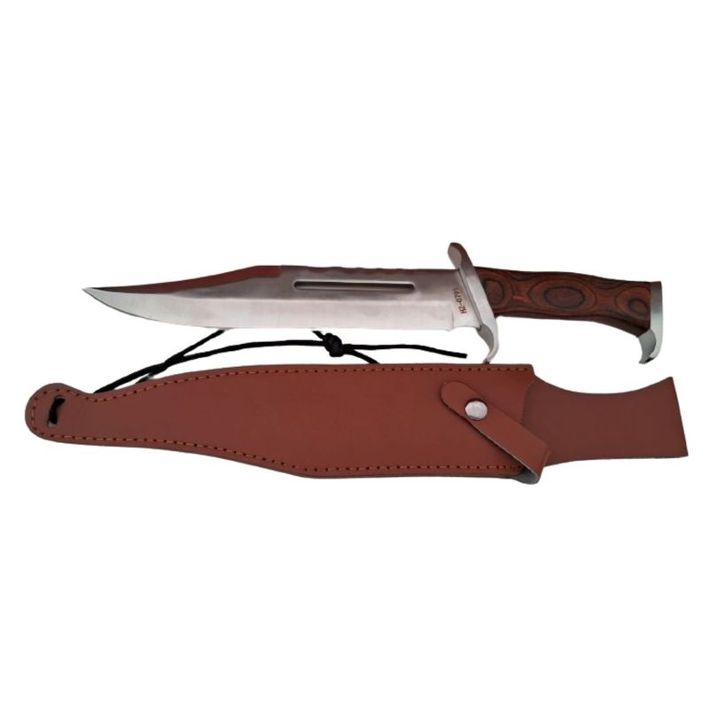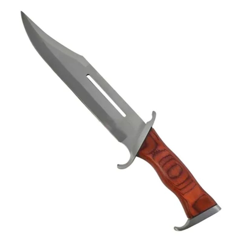 Com lâmina de 29 cm em aço inoxidável e comprimento total de 44 cm, é ideal para caça, pesca, camping, churrasco, trilhas, sobrevivência e uso tático.