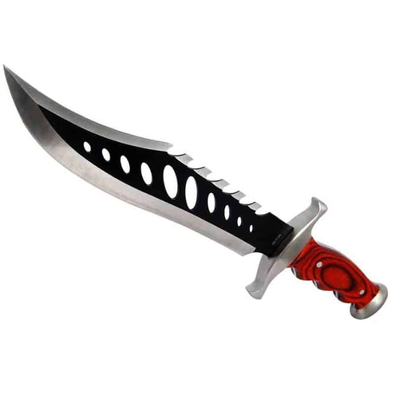 *Peso: 439 g *Cor: Inox *Cabo: Aço e Madeira *Dimensões da Faca: 38 cm (comprimento) x 5 cm (largura) *Dimensões da Bainha: 38 cm (comprimento) x 9 cm (largura) *Espessura da Lâmina: 3 mm *Comprimento da Lâmina: 24 cm *Material do Cabo: Aço *Material da Lâmina: Aço inox com tratamento térmico de excelência, garantindo um corte excepcional e leveza.
