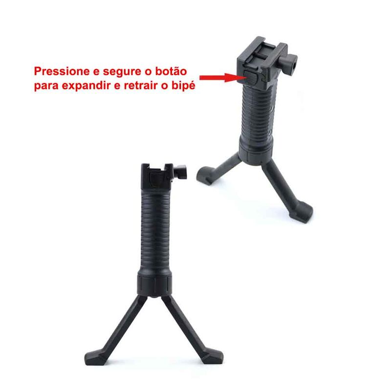 Front Grip BiPod com Bipé Retrátil e Trilho Lateral 20mm