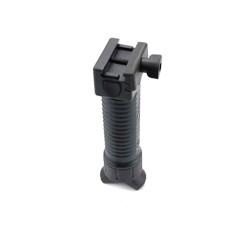 O Front Grip Bipod com bipé retrátil e trilho lateral de 20 mm é um acessório projetado para melhorar a estabilidade e a precisão em armas Airsoft, geralmente rifles de assalto ou carabinas. Esse tipo de empunhadura dianteira é bastante popular entre os atiradores.