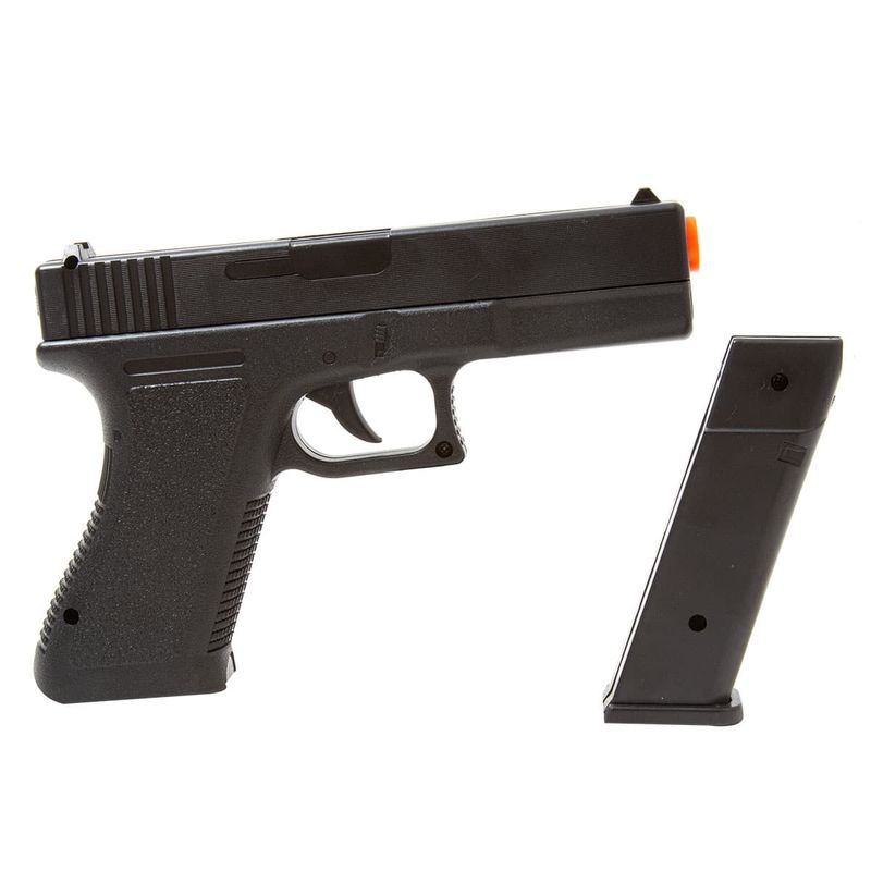 A Glock G17 Airsoft Spring tem um design ergonômico adequado tanto para usuários destros quanto para canhotos. Possui Slide/Ferrolho em metal com corpo e carregador em polímero de alta rigidez e conforto, o que confere à arma de pressão maior robustez e um peso equilibrado de 230g, o que também fornece ao usuário uma sensação de realismo. A configuração de construção e materiais empregados na parte externa é exatamente como na Pistola Glock real.