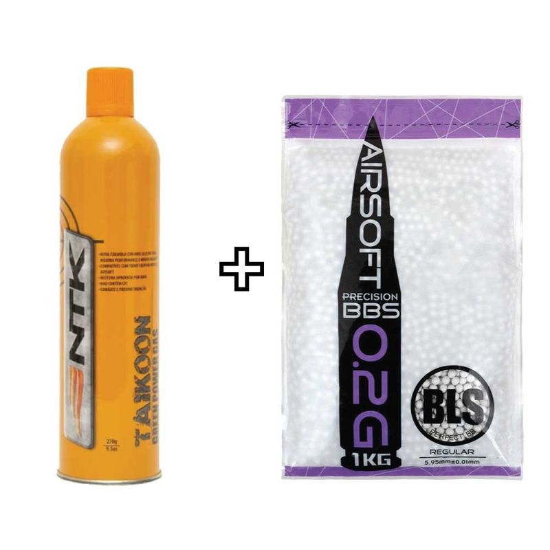 Kit BBs Munição Airsoft Feasso BLS .20g Esfera 6mm 5000un + Green Gás NKT