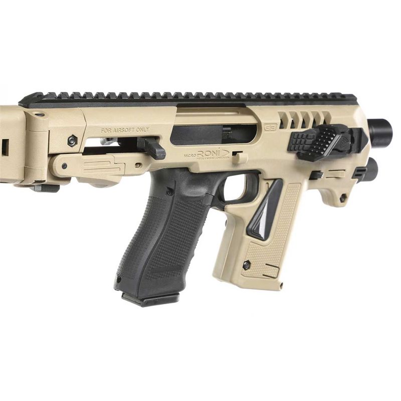 O kit de conversão Micro RONI da CAA Airsoft Division produz uma pistola padrão e um conjunto completo.