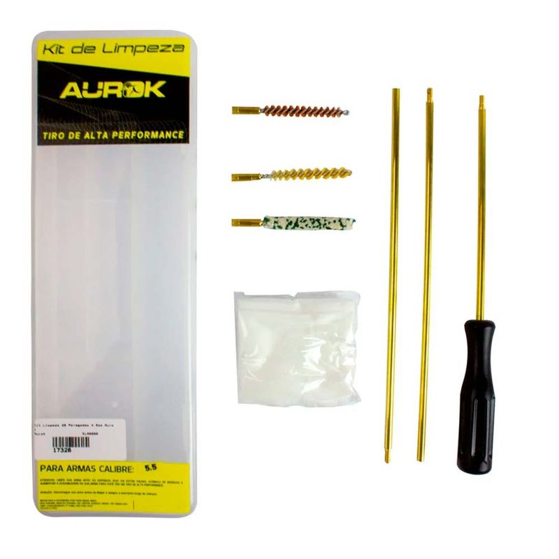 O Kit de Limpeza Aurok para Armas de 24 Polegadas 5,5mm é ideal para a limpeza e manutenção periódica de Carabinas, pistola e revólveres de chumbinho nos principais calibres utilizados de airguns.