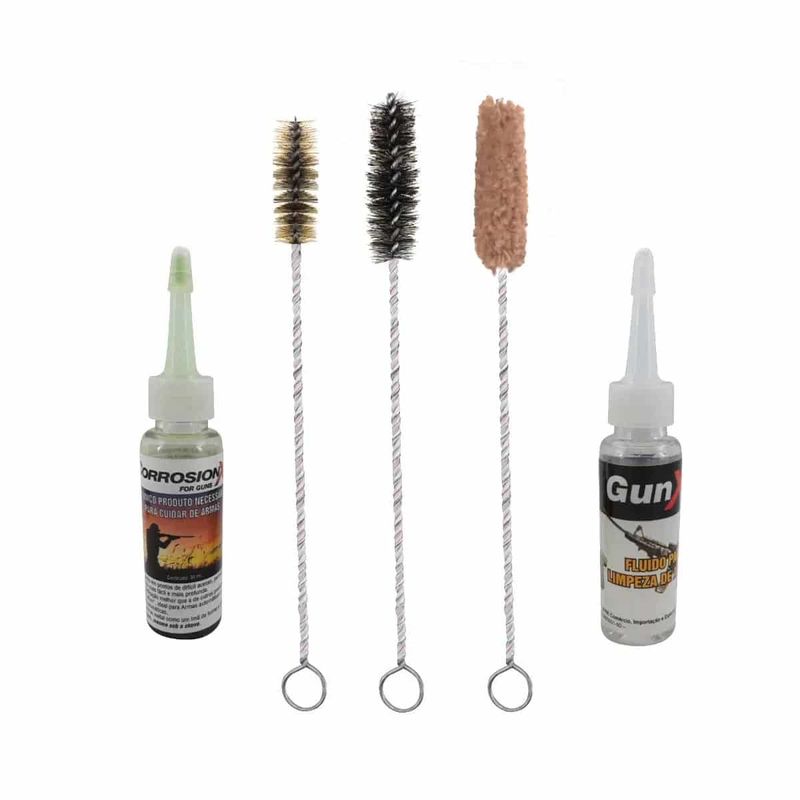 Este kit inclui 1un escova de crina, 1un escova de lã e 1un escova latão para remover resíduos de pólvora, chumbo e cobre do interior dos canos. Também acompanha de 1un Lubrificante Corrosion X Marine Gun e 1un Fluído de Limpeza GunX.