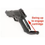 O magazine da P226 é padrão 2x8, com capacidade total de 16 chumbinhos. Ela aceita chumbinhos de até 8mm de comprimento, sendo indicado o uso de chumbos leves (até 0,5g) para melhor desempenho.