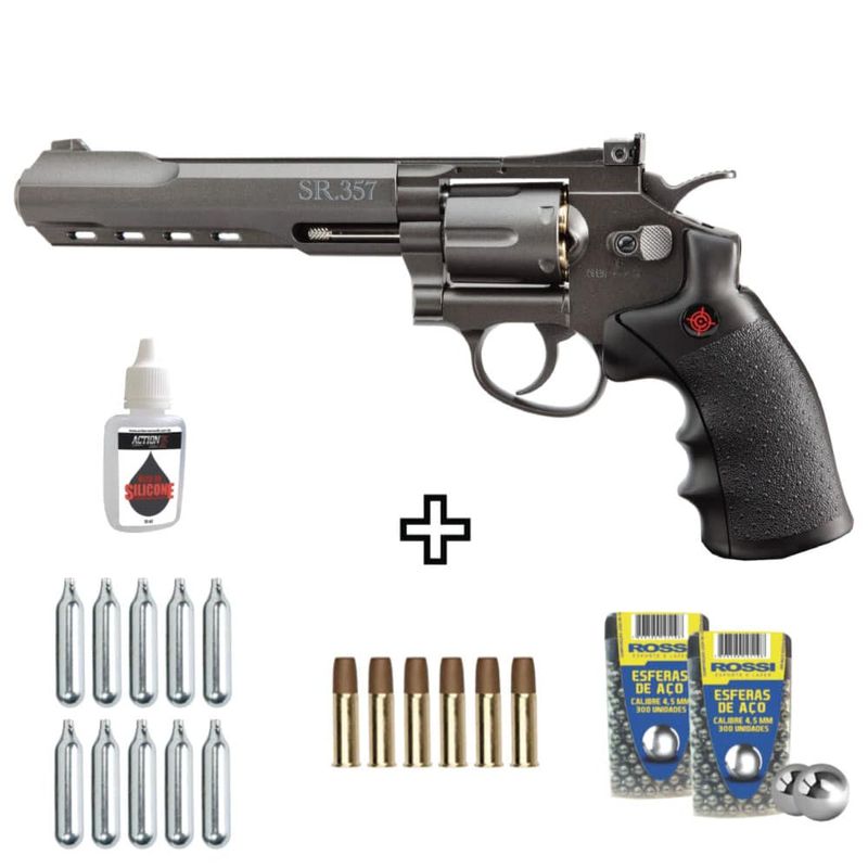 Kit Revólver Airgun Crosman CO2 SR357 Black Full Metal 4,5mm