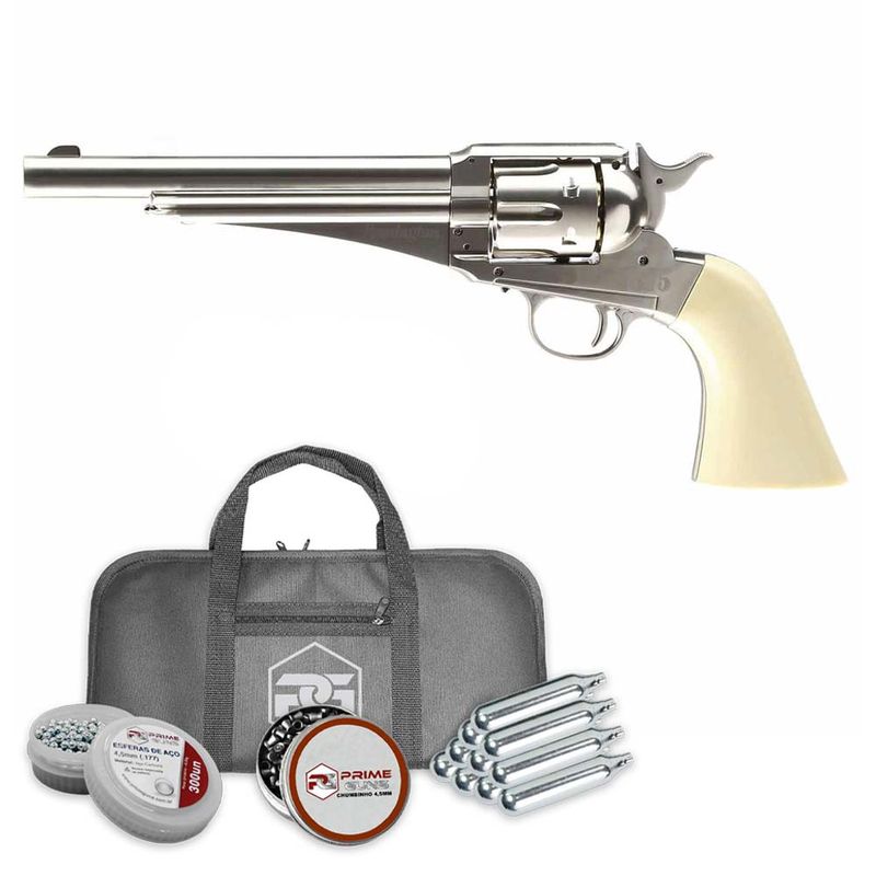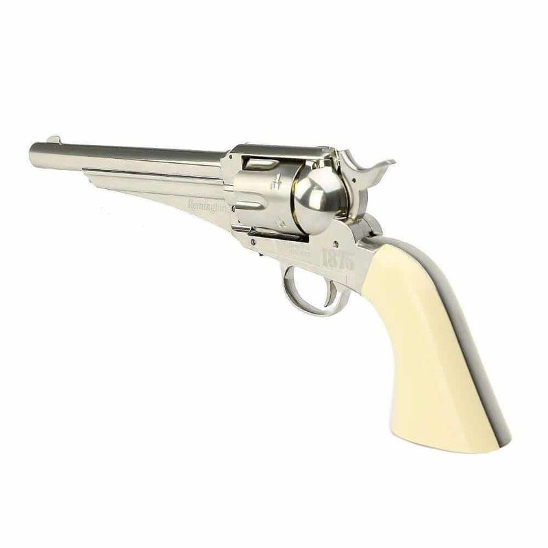 O Remington 1875 CO2 Revolver é uma réplica de arma de pressão CO2, calibre 4,5mm.