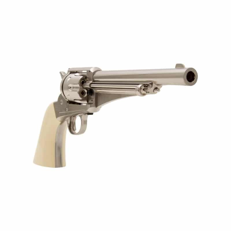 Este revólver histórico, originalmente em calibre .44, também era conhecido como "Remington New Model Army" e foi amplamente utilizado pelas forças armadas americanas no Velho Oeste.