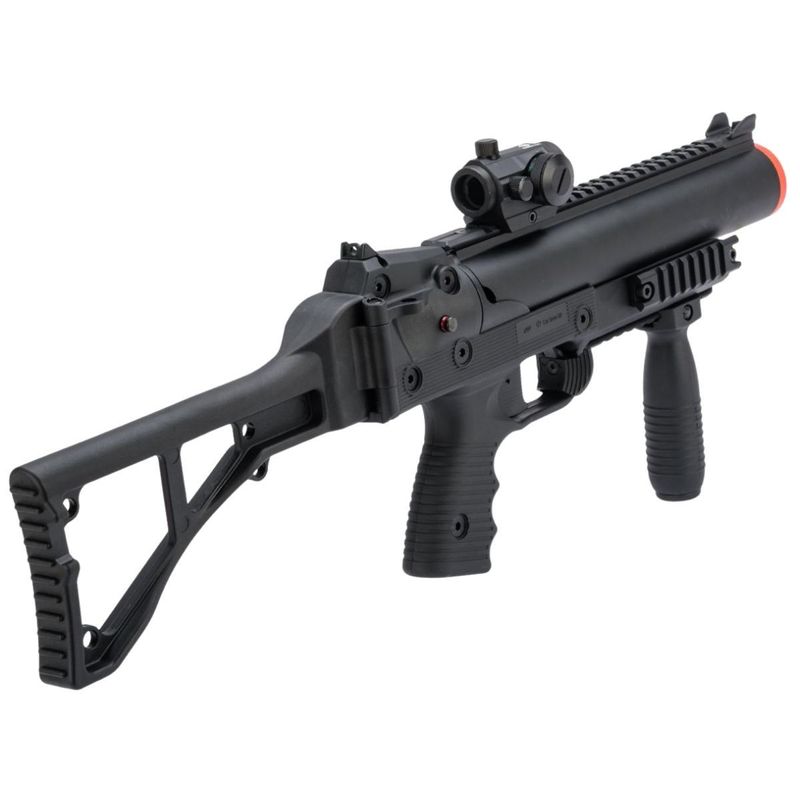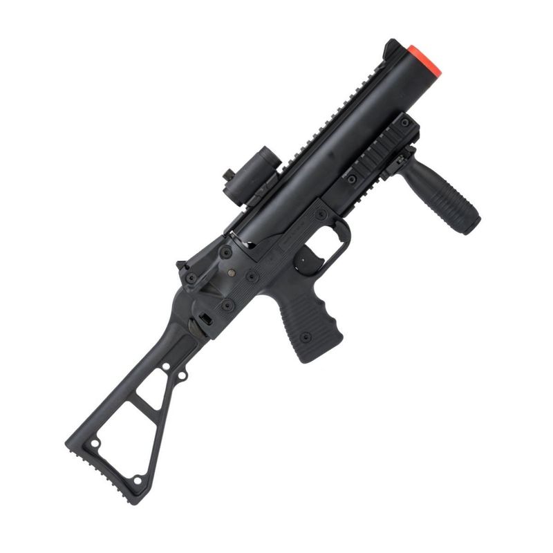 Com design leve, compacto e preciso, tornou-se referência no segmento de lançadores, combinando ergonomia, adaptabilidade e alta performance tática.