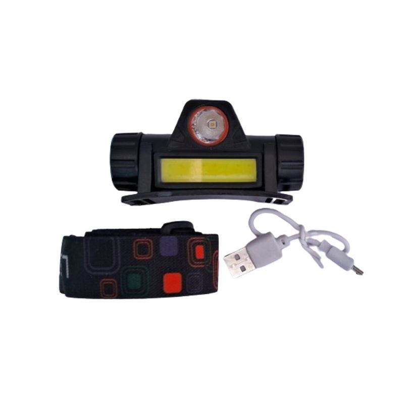 • Características: LED Cree T6 + LED COB, iluminação forte, bateria recarregável, elástico regulável, ímã de fixação, resistente à água e poeira.