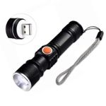 Ideal para acampamentos, trilhas, situações de emergência ou uso profissional, esta lanterna LED branca de alto brilho conta com bateria interna recarregável via USB, foco ajustável com zoom e corpo em metal de alta resistência, garantindo confiabilidade mesmo em condições extremas.