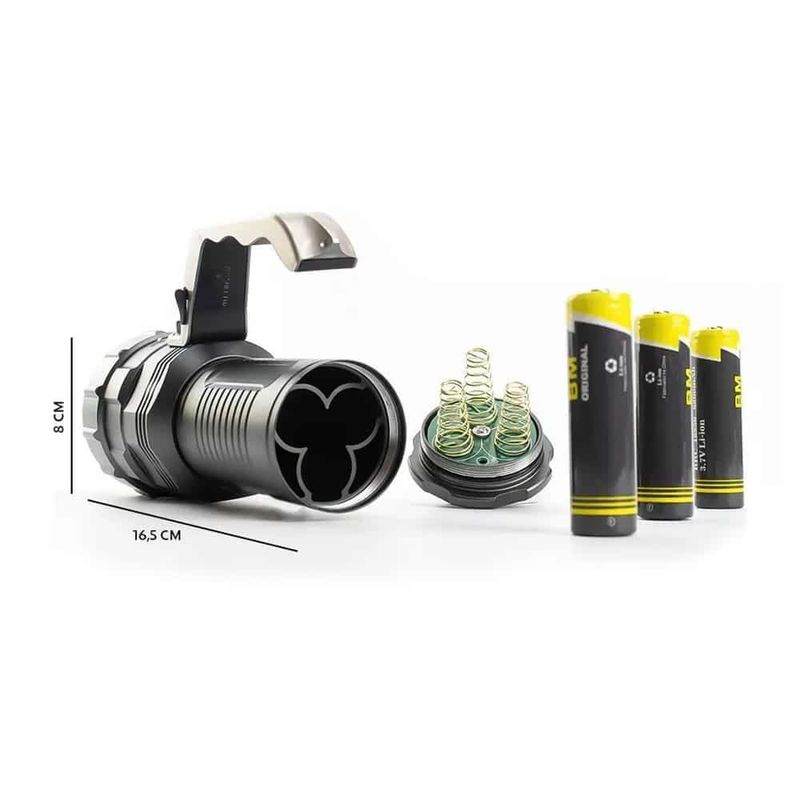 Com 3 baterias recarregáveis, essa lanterna é ideal para que não precise se preocupar em comprar pilhas. Ela vem acompanhada de um carregador de tomada bivolt (110V/220V) e também de um carregador veicular.