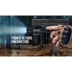 • Otimizado por uma lente TIR, o feixe branco tem até 1.350 lúmens de brilho e 260 metros de distância, bom para consciência situacional de perto e de longe.