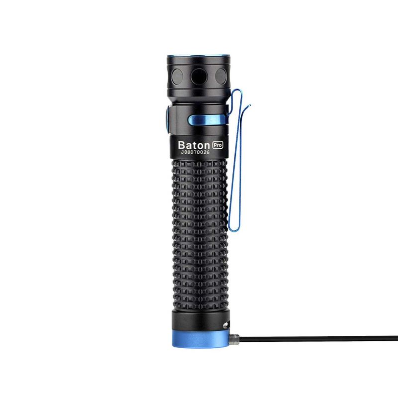 Alimentado por uma única bateria recarregável de lítio personalizada de 3500mAh 18650 e um LED de alta eficiência, a Lanterna Tática Baton Pro oferece uma saída máxima de 2.000 lúmens.