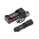 • Potência e Alcance: Equipada com lâmpada LED XPE, oferece 100 lúmens de potência e um alcance de feixe de luz de até 100 metros.
