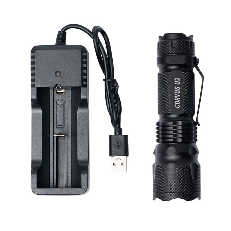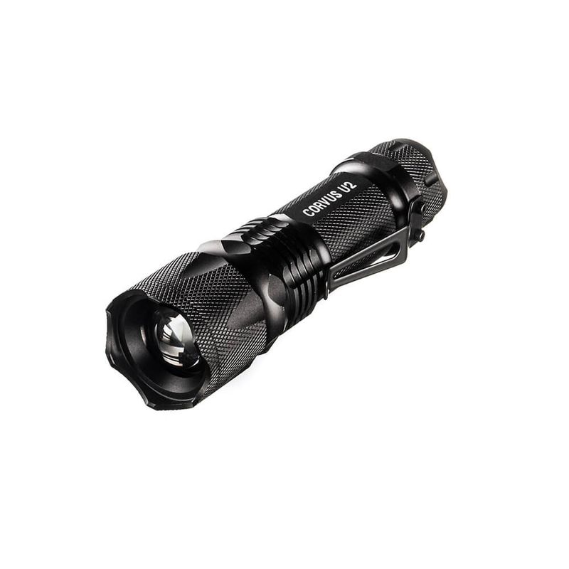 • Design Tático Compacto: Fabricada em alumínio aeroespacial, a Corvus U2 possui um design compacto e ergonômico, com empunhadura antiderrapante e clip tático para facilitar o transporte.