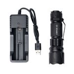 • Recarregável via USB: A lanterna é alimentada por uma bateria recarregável de 18650 (2200 mAh) e pode ser recarregada facilmente através do carregador USB, compatível com diversas fontes de energia.