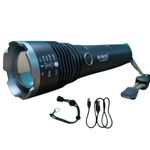 • Características: LED de alta intensidade, múltiplos modos de iluminação, foco ajustável, construção em alumínio, bateria recarregável.
