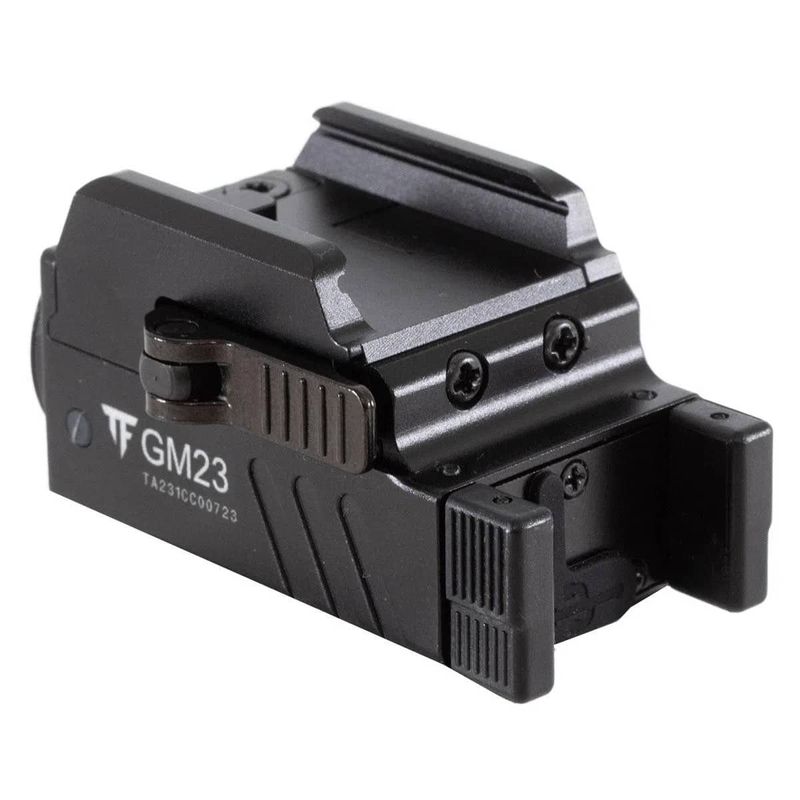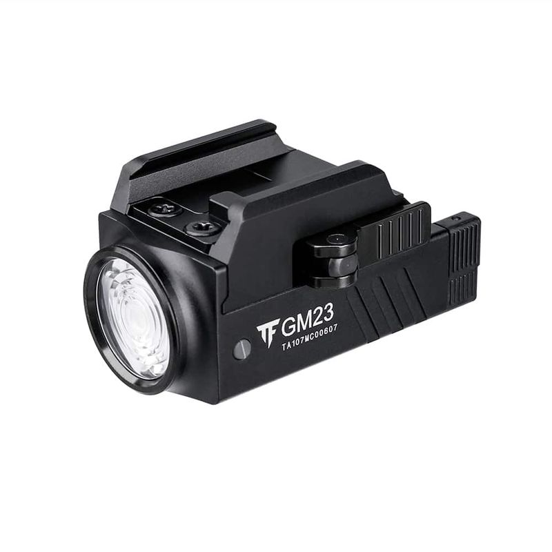Uma lanterna tática universal, a GM23 da Trust Fire é uma lanterna prática e compacta para ser usada na maioria das pistolas ou rifles, sejam de airsoft, airgun ou armas de fogo.