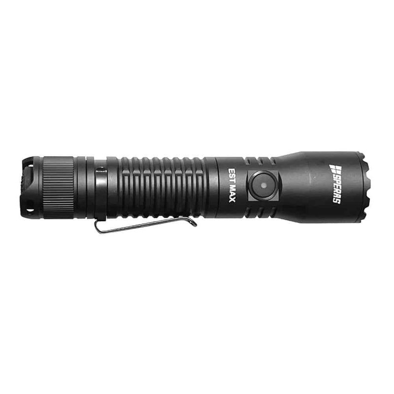 A Speras EST MAX ofereceseis modos de operação– Turbo, Alto, Médio, Baixo, Estrobo e SOS – tornando-a altamente adaptável a diferentes necessidades táticas e de iluminação.