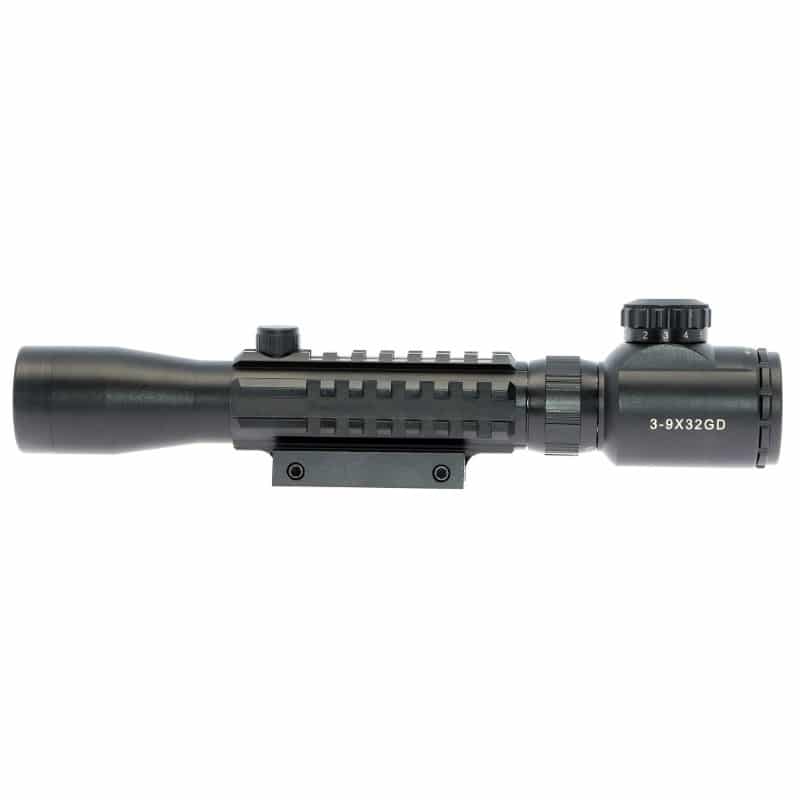 Com ótimo custo benefício, juntando preço acessível, qualidade e alcance, aluneta 3-9x32 Rifle scope oferece zoom de aproximação ajustável entre 3 e 9 vezes, sendo 32mm de lente objetiva.