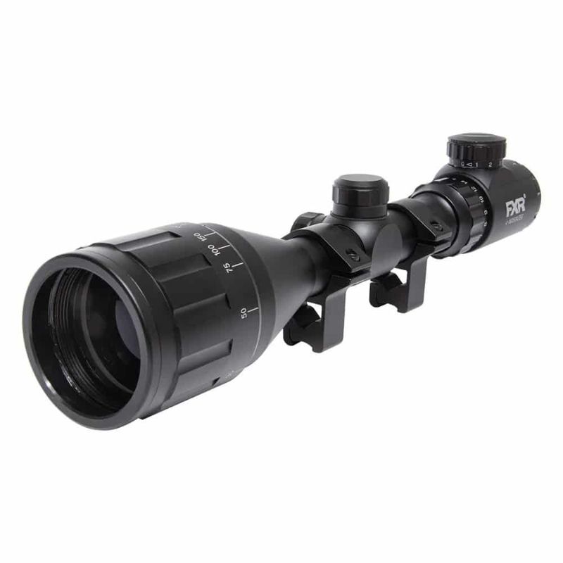 A Luneta 4-16x50mm AOE Retículo Luminoso Mil Dot para Carabinas 11mm FXR, fabricado pela SPA Artemis e distribuído no Brasil com exclusividade da FXR, é uma mira para carabinas de pressão de ótima qualidade e grande capacidade técnica. Possui Retículo iluminado verde e vermelho integrado com Range Finder, ajuste de paralaxe frontal, mil dot e conta com excelente resistência a água.