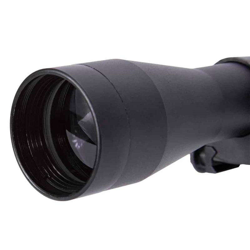 Com capacidade de um zoom fixo de 4x indicado para disparos de até 100 jardas. A luneta possui uma objetiva de 32 mm de diâmetro, lentes de cristal com um revestimento interno que evita reflexos intensos, e deixa a imagem mais clara e nítida.