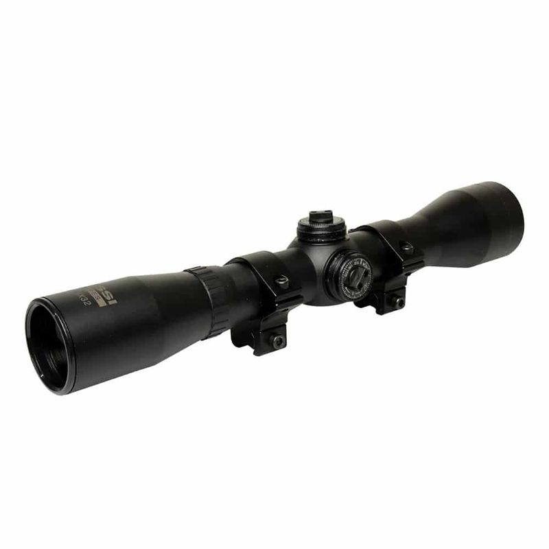 Com capacidade de um zoom fixo de 4x indicado para disparos de até 100 jardas. A luneta possui uma objetiva de 32 mm de diâmetro, lentes de cristal com um revestimento interno que evita reflexos intensos, e deixa a imagem mais clara e nítida.