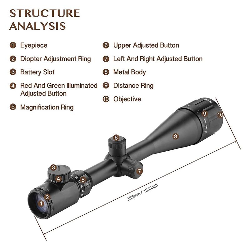 Feito de liga de alumínio de alta qualidade, este escopo de rifle de ar é durável e leve, impermeável e à prova de choque.