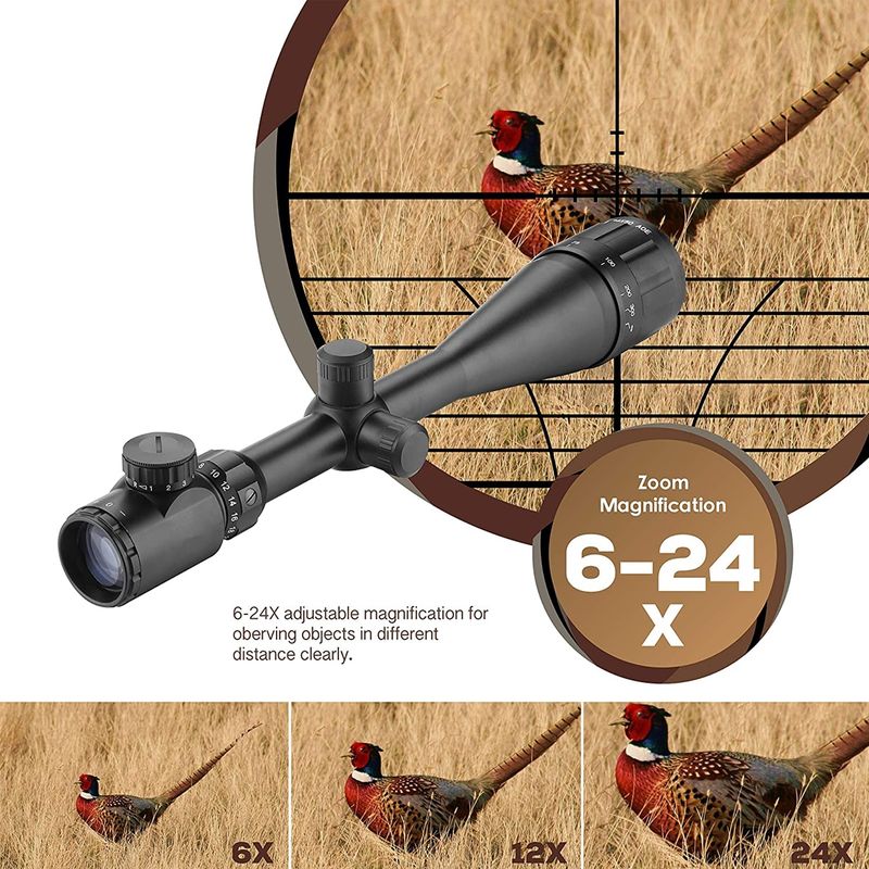 Luneta Sniper com vidro óptico totalmente revestido de 50mm e alta clareza óptica com ampliação de 6-24X vezes, excelente para alvos em movimento e disparo rápidos.