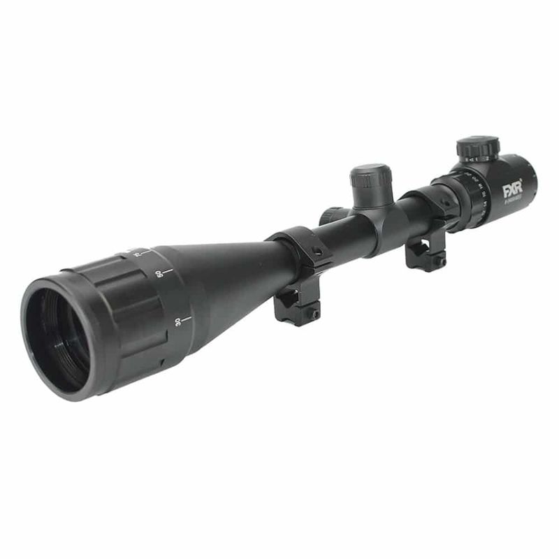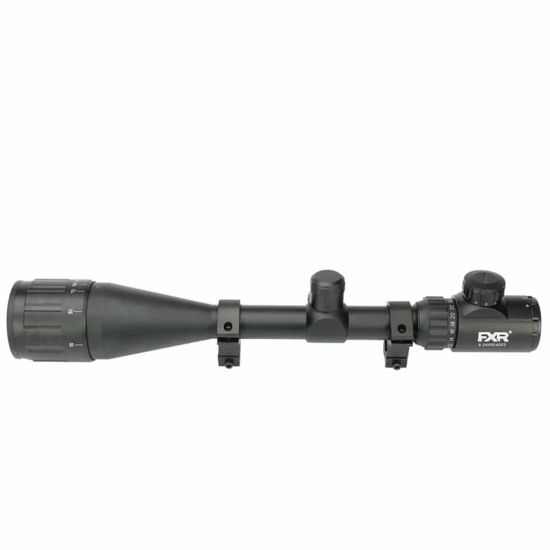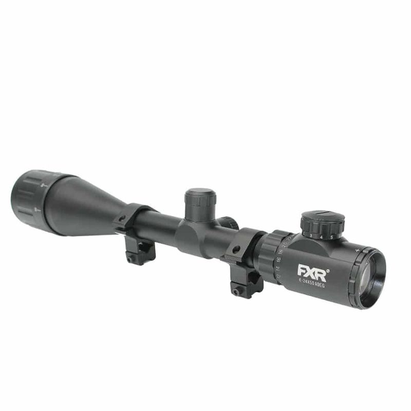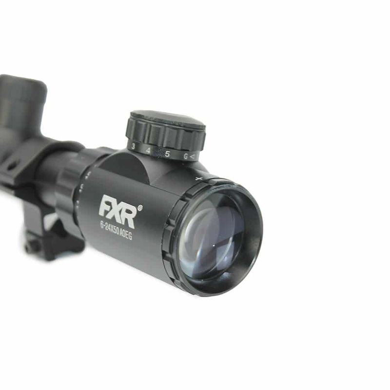 A Luneta 6-24x50mm AOE Retículo Luminoso Mil Dot para Carabinas 11mm FXR, fabricado pela SPA Artemis e distribuído no Brasil com exclusividade da FXR, é uma mira para carabinas de pressão de ótima qualidade e grande capacidade técnica. Possui Retículo iluminado verde e vermelho integrado com Range Finder, ajuste de paralaxe frontal, mil dot e conta com excelente resistência a água.