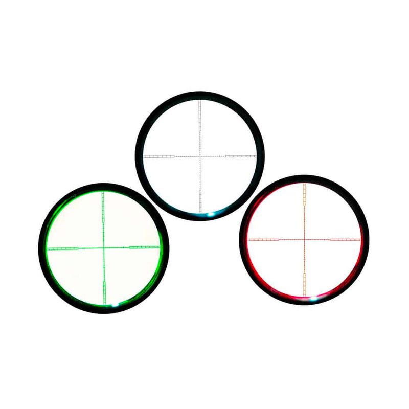Essa é uma Luneta de Segundo Plano Focal (SPF), as posições dos pontos do retículo se alteram com ampliações diferentes, ou seja, o ponto de impacto no alvo se altera em relação ao retículo dependendo da ampliação utilizada na Luneta.