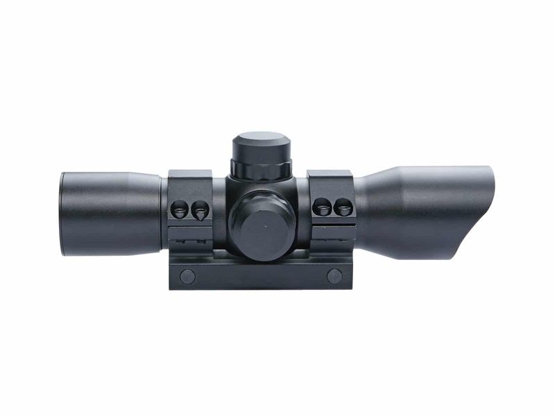 Possui um ponto iluminado em vermelho / verde altamente visível com um mostrador de brilho de intensidade variável, além de vento e elevação totalmente ajustáveis.